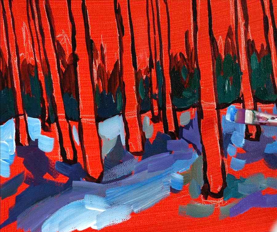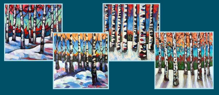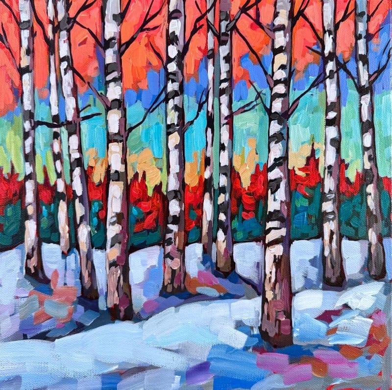In this painting tutorial, we explore the elegant rhythm of aspen trunks standing tall against a snowy landscape. Inspired by late-day light in the colder months, this piece balances crisp whites, cool tones, and unexpected color woven into the snow and sky.
