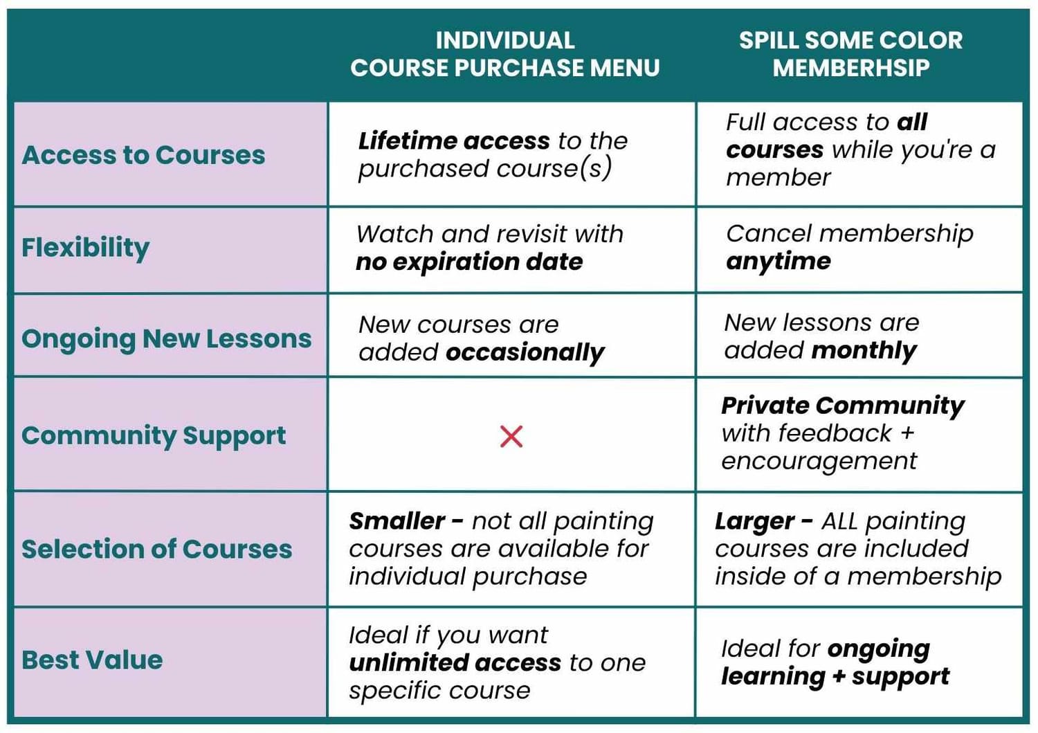 Individual Course Purchase vs Membership - comparison:
